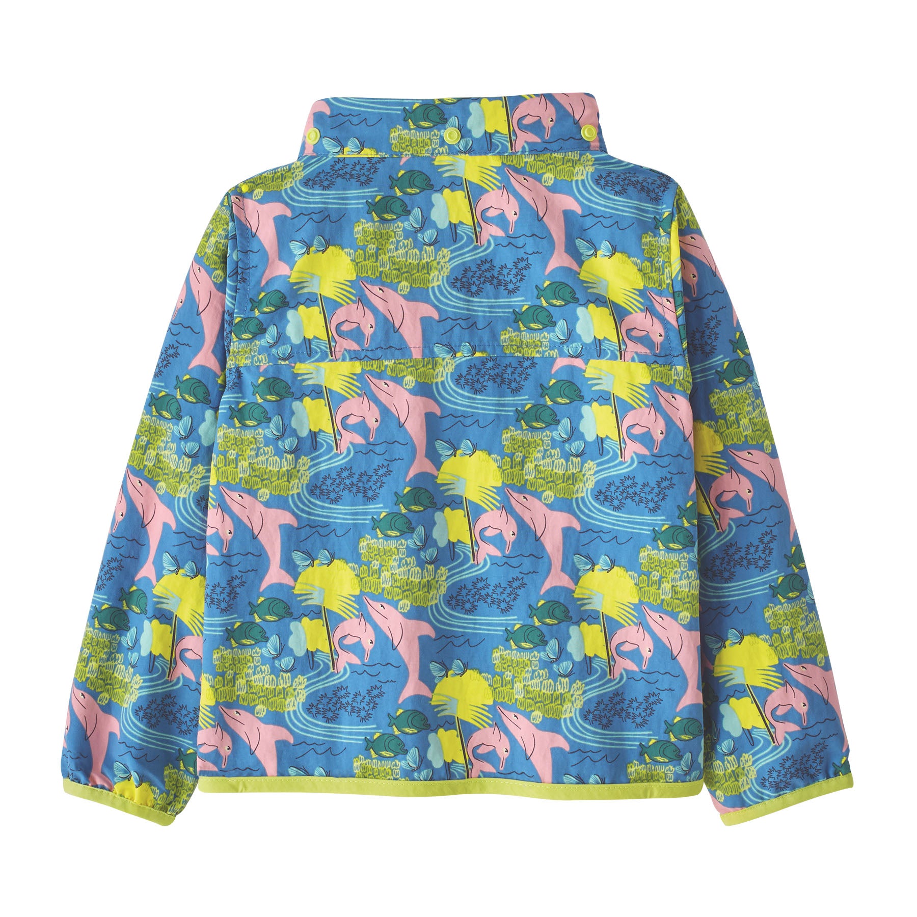 日差しや風や小雨から赤ちゃんを守るフード付きウインドブレーカー。素材は軽量なリサイクル・ナイロン100%で、UPF(紫外線防止指数)40+のUVプロテクションを提供し、軽度の水分を弾く有機フッ素化合物(PFC/PFAS)不使用のDWR(耐久性撥水)加工済み。フードは取り外し可能でフルレングスのジッパーはウインドフラップ付き。チェストポケットが1つとハンドウォーマーポケットが2つ