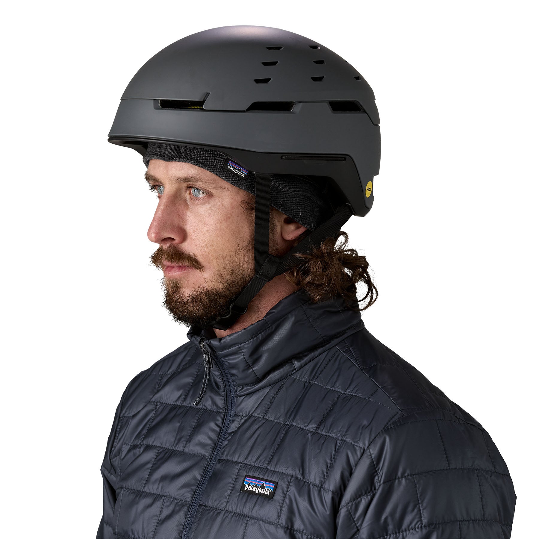 目の詰んだニットはかさばらず、ヘルメットやフードの下に着用可能